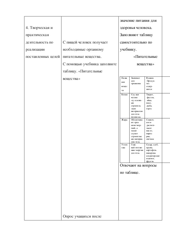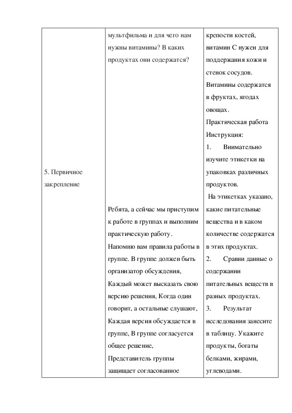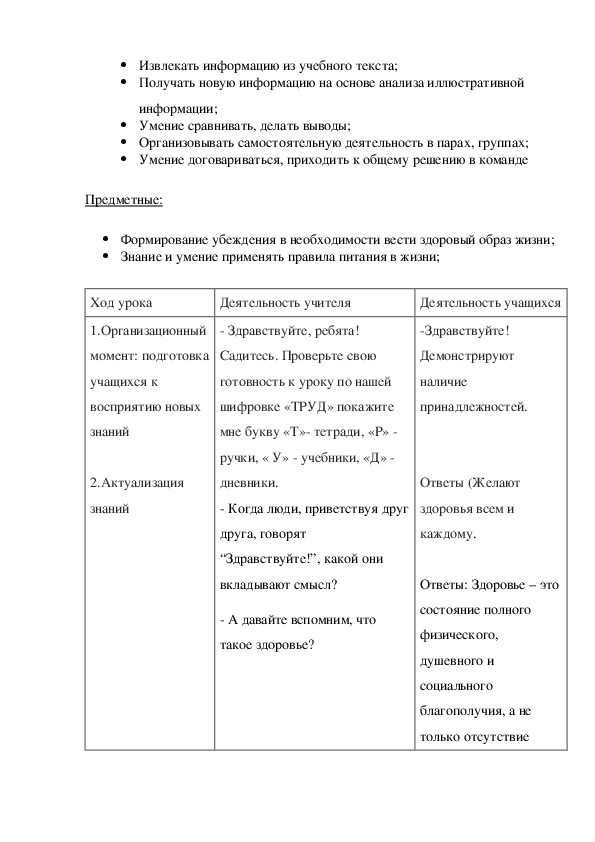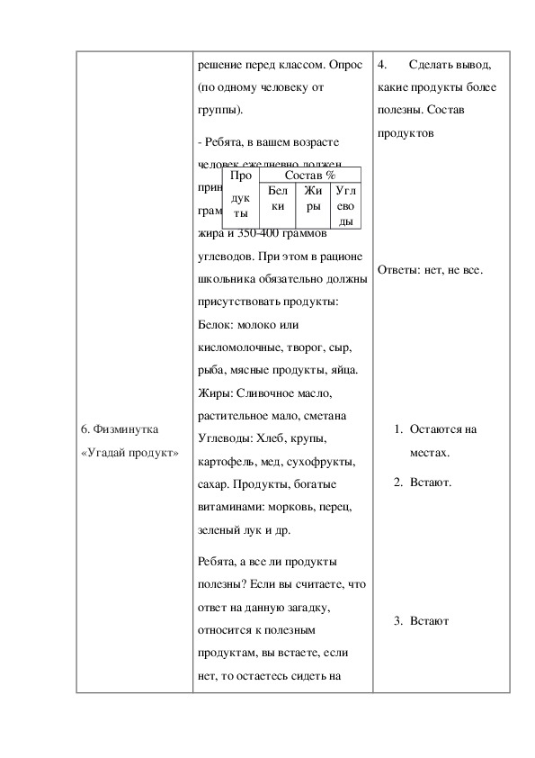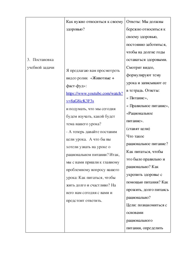 Цель: познакомить учащихся с основами рационального питания, раскрыть