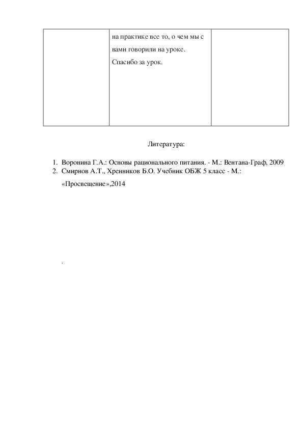 1. Воронина Г.А.: Основы рационального питания. М.: ВентанаГраф, 2009