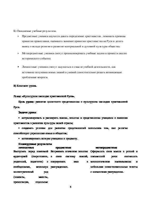 Разработка урока по теме: «Культурное наследие христианской Руси».Конспект урока ОДНК в 5 классе.