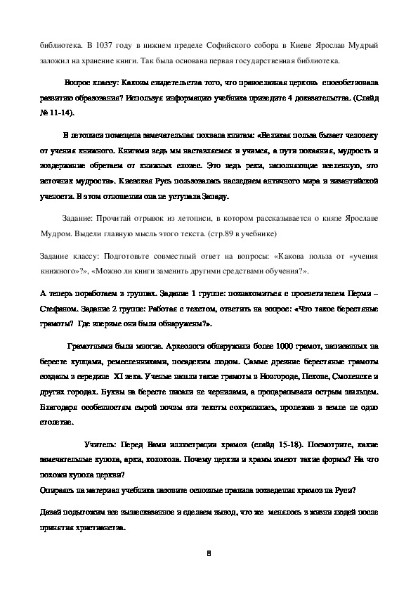 Вопрос классу: Каковы свидетельства того, что православная церковь способствовала
