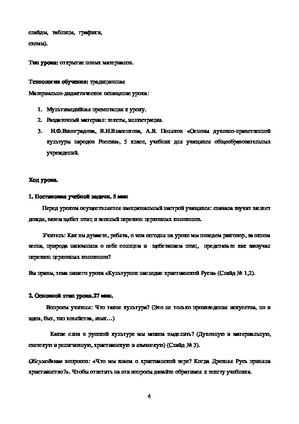 Разработка урока по теме: «Культурное наследие христианской Руси».
