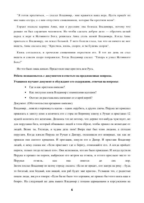 принятия православия, оценивать значение принятия христианства на Руси и делать