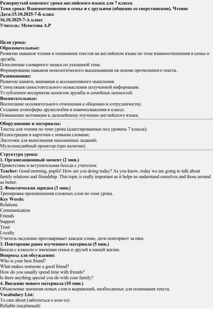 Teacher: Good morning, pupils! How are you doing today? As you know, today we are going to talk about family relations and friendship. This topic is really important as it helps us understand ourselves and those around us better.