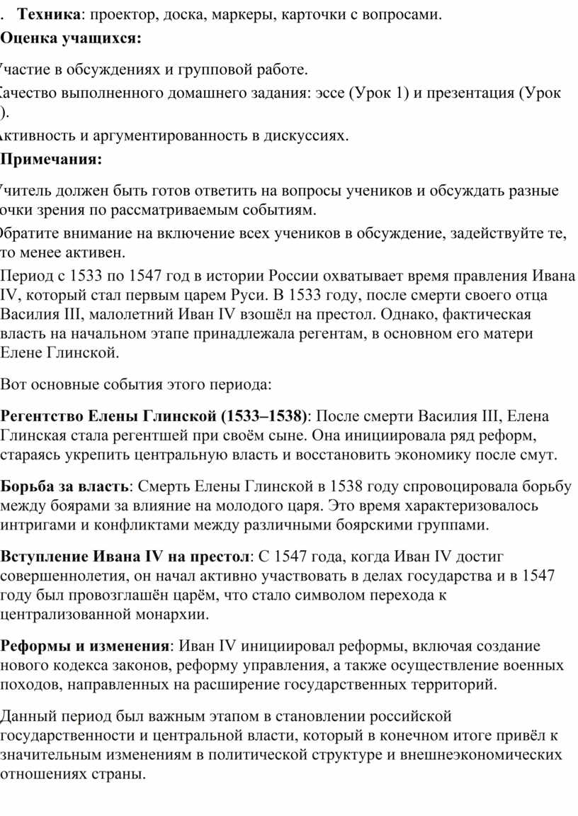 Презентует информацию о Елене Глинской и событиях 1533–1547 годов. |