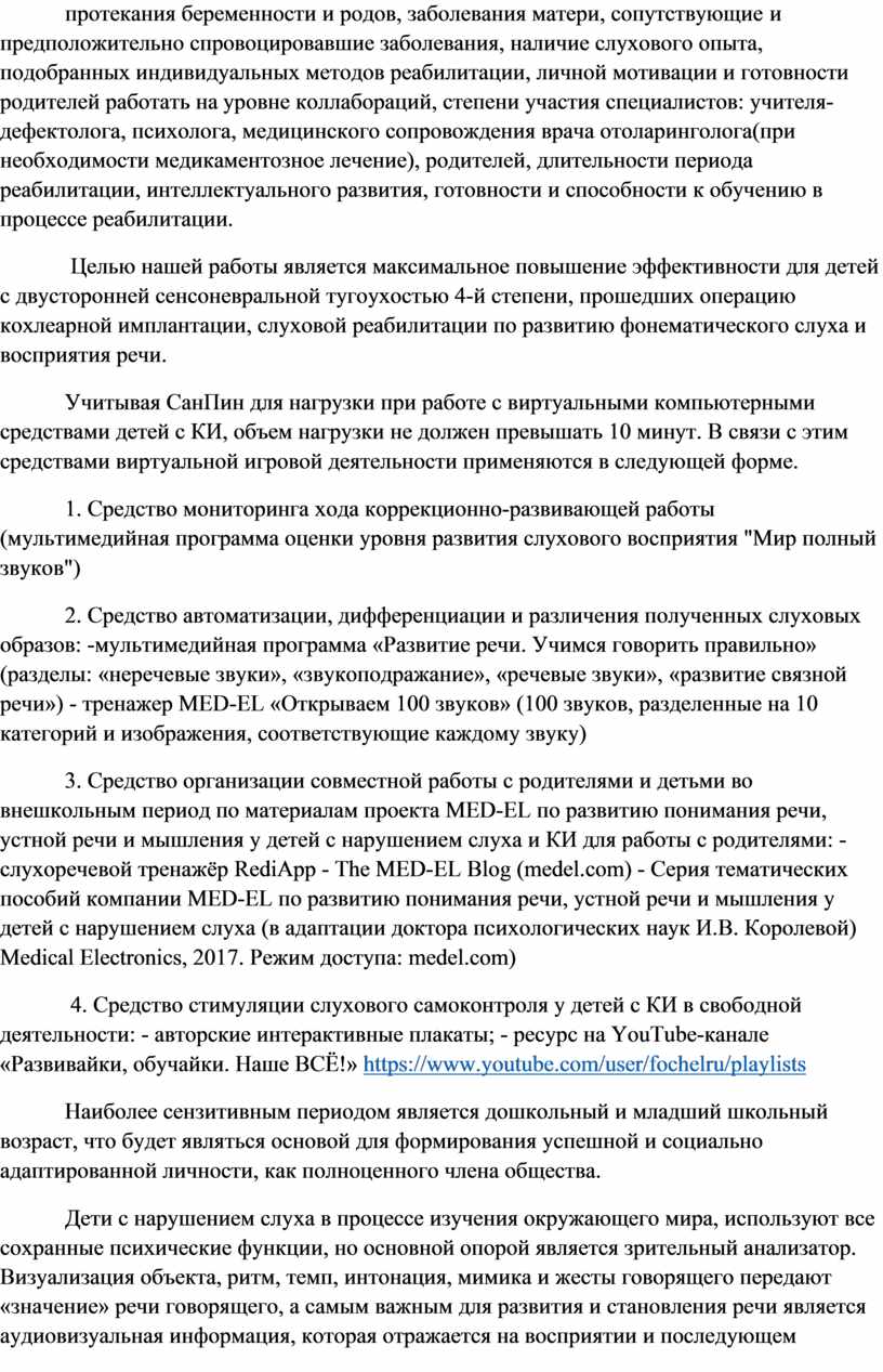 3. Средство организации совместной работы с родителями и детьми во внешкольным период по материалам проекта MED-EL по развитию понимания речи, устной речи и мышления у детей с нарушением слуха и КИ для работы с родителями: - слухоречевой тренажёр RediApp - The MED-EL Blog (medel.com) - Серия тематических пособий компании MED-EL по развитию понимания речи, устной речи и мышления у детей с нарушением слуха (в адаптации доктора психологических наук И.В. Королевой) Medical Electronics, 2017. Режим доступа: medel.com)