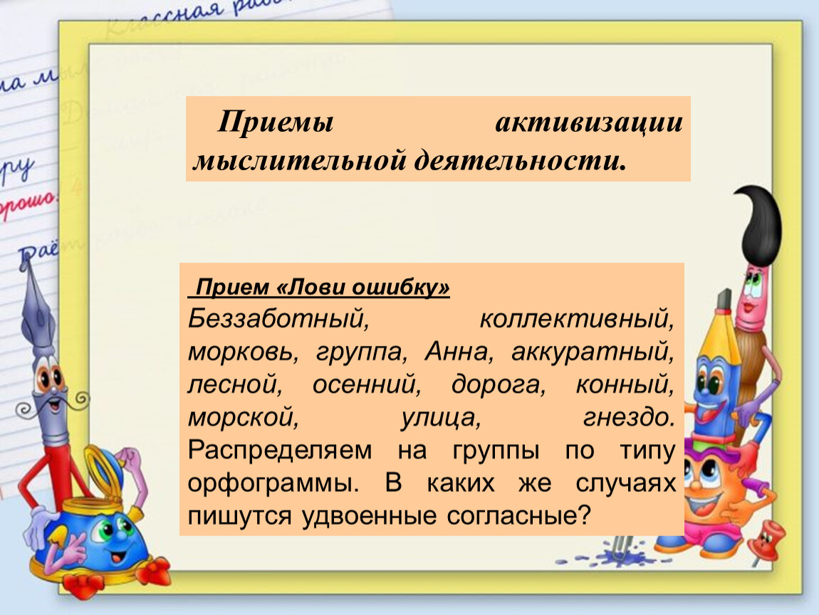 Беззаботный, коллективный, морковь, группа, Анна, аккуратный, лесной, осенний, дорога, конный, морской, улица, гнездо. Распределяем на группы по типу орфограммы. В каких же случаях пишутся удвоенные согласные?