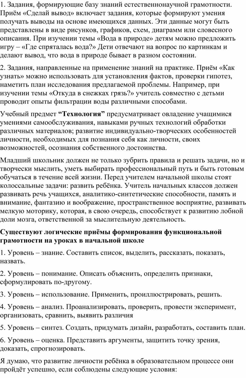 Существуют логические приёмы формирования функциональной грамотности на уроках в начальной школе