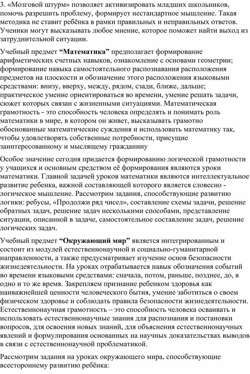 3. «Мозговой штурм» позволяет активизировать младших школьников, помочь разрешить проблему, формирует нестандартное мышление. Такая методика не ставит ребёнка в рамки правильных и неправильных ответов. Ученики могут высказывать любое мнение, которое поможет найти выход из затруднительной ситуации.