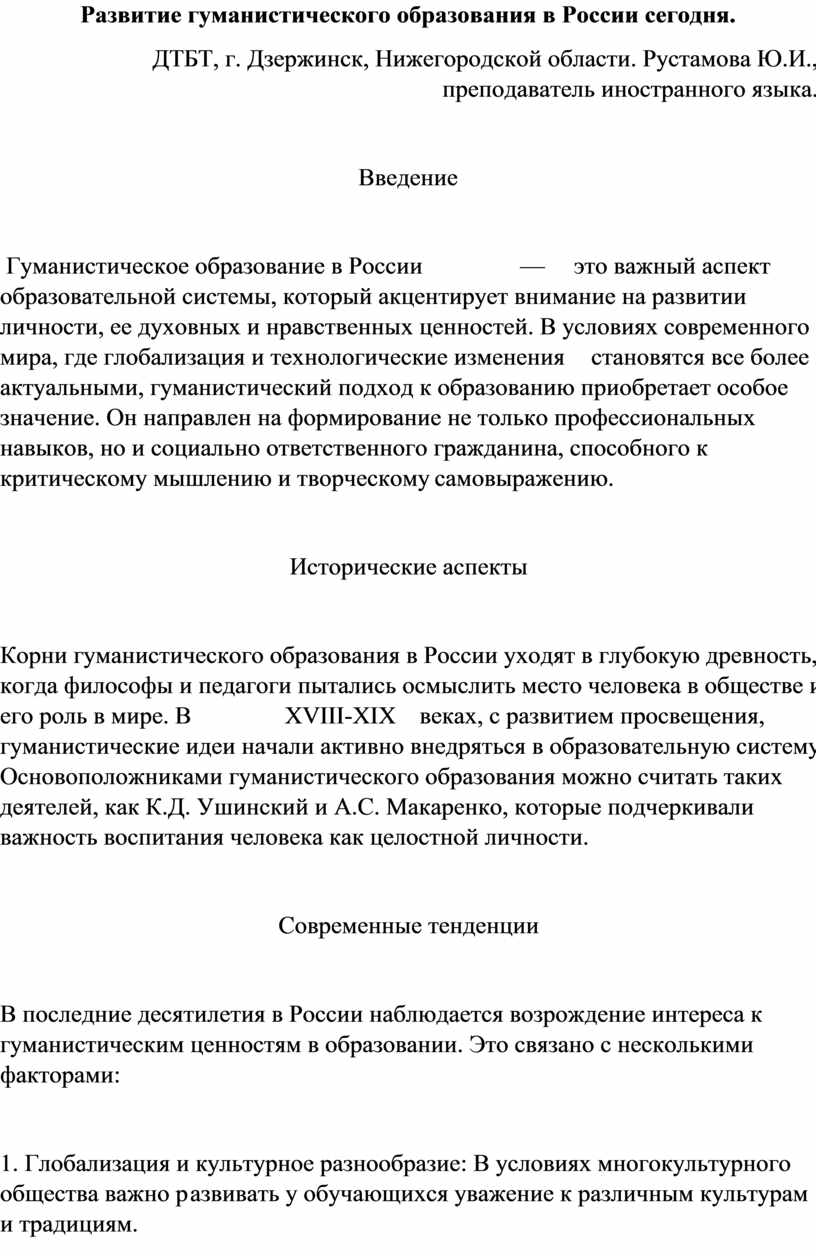 В последние десятилетия в России наблюдается возрождение интереса к гуманистическим ценностям в образовании. Это связано с несколькими факторами: