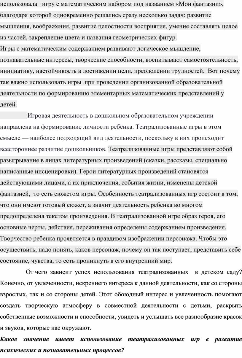 Какое значение имеет использование театрализованных игр в развитие психических и познавательных процессов?