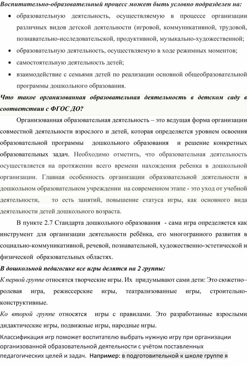 Воспитательно-образовательный процесс может быть условно подразделен на:
