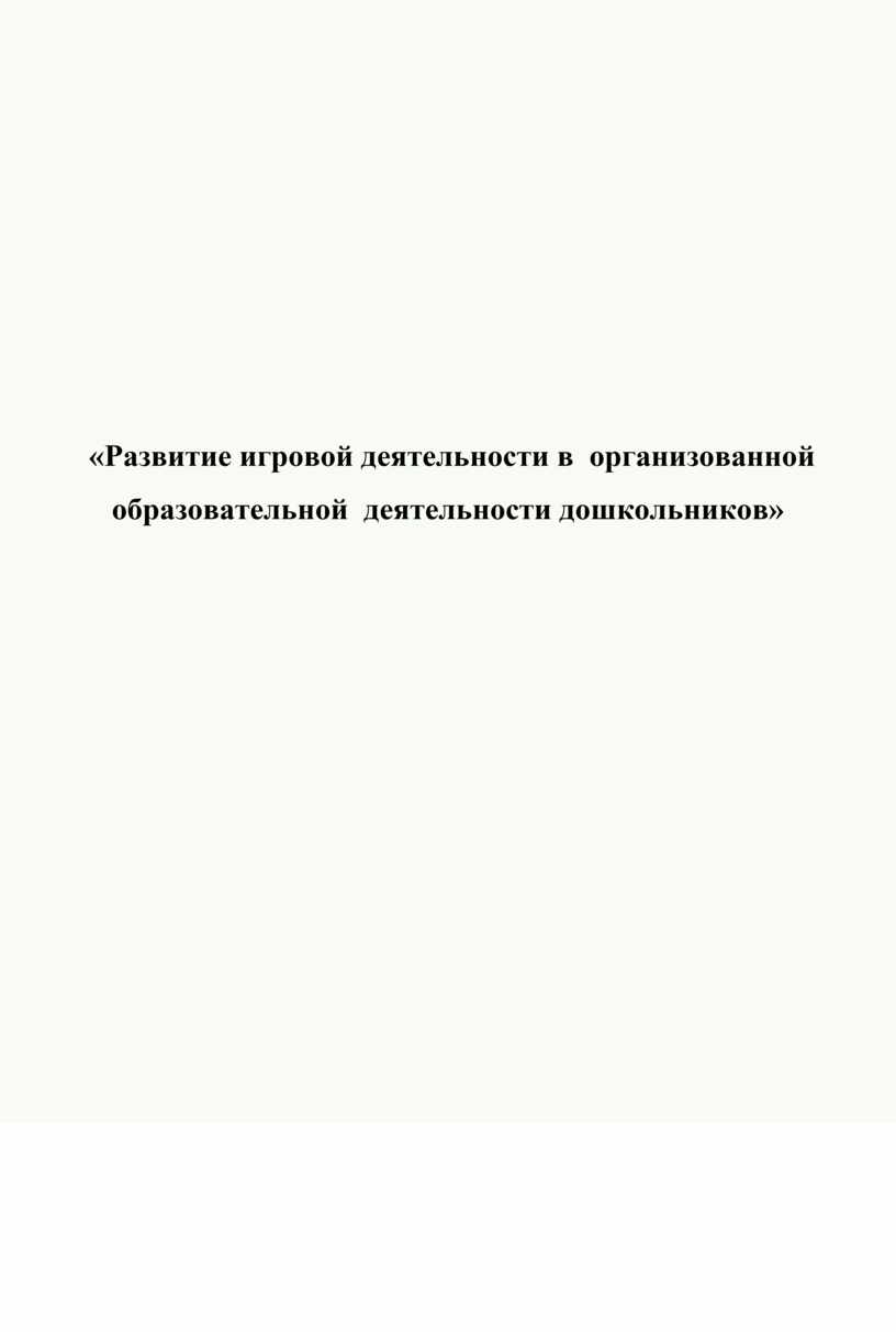 «Развитие игровой деятельности в организованной образовательной деятельности дошкольников»