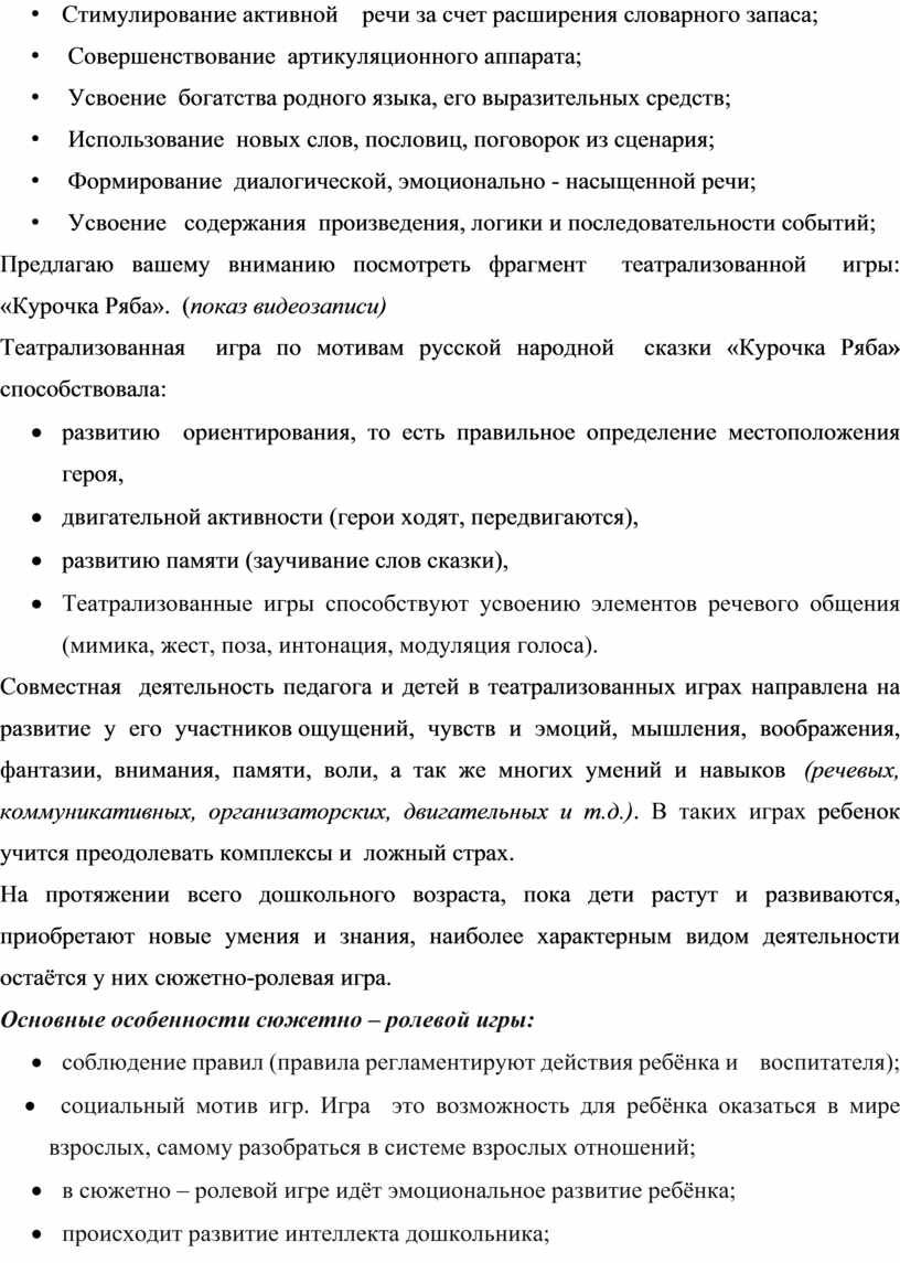Предлагаю вашему вниманию посмотреть фрагмент театрализованной игры: «Курочка Ряба». (показ видеозаписи)