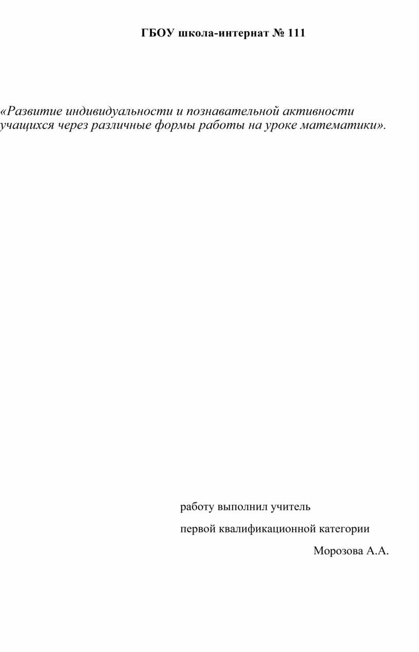 «Развитие индивидуальности и познавательной активности учащихся через различные формы работы на уроке математики».