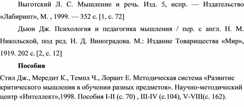 Выготский Л. С. Мышление и речь. Изд. 5, испр. — Издательство «Лабиринт», М. , 1999. — 352 с. [1, с. 72]