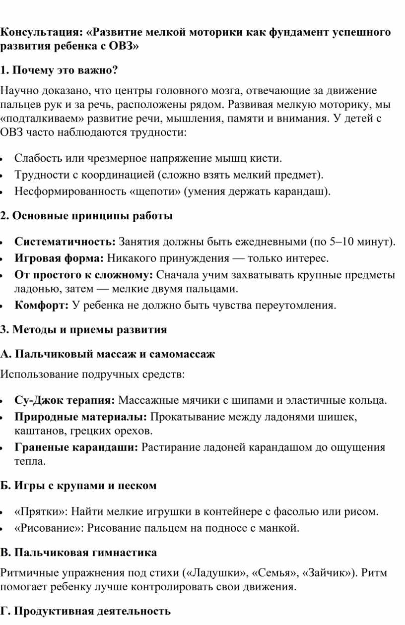 Консультация: «Развитие мелкой моторики как фундамент успешного развития