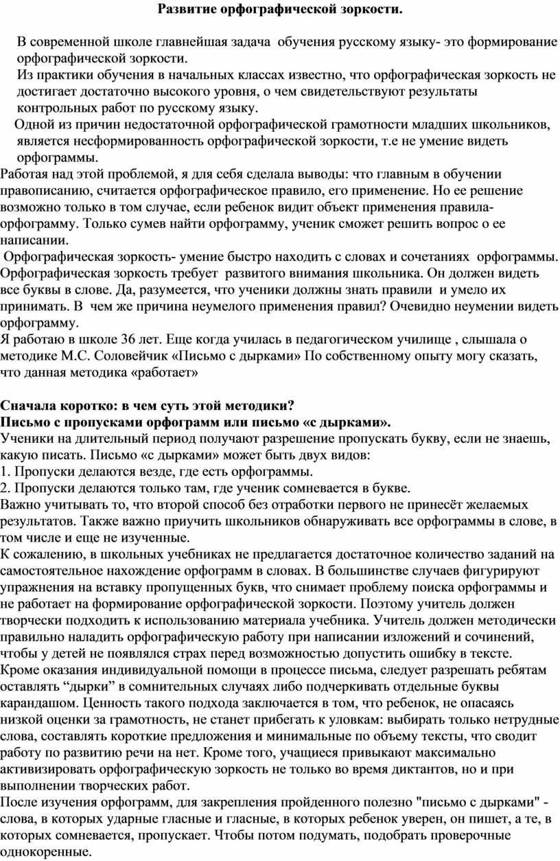 орфограммы и не работает на формирование орфографической зоркости. Поэтому