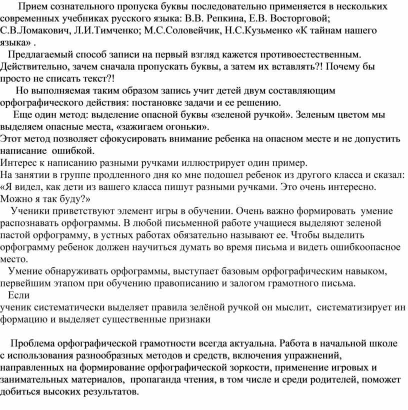 Еще один метод: выделение опасной буквы «зеленой ручкой». Зеленым цветом мы выделяем опасные места, «зажигаем огоньки».