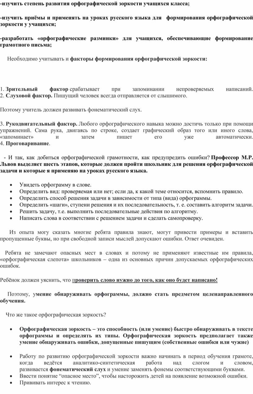 - И так, как добиться орфографической грамотности, как предупредить ошибки? Профессор М.Р. Львов выделяет шесть этапов, которые должен пройти школьник для решения орфографической задачи и которые я применяю на уроках русского языка.