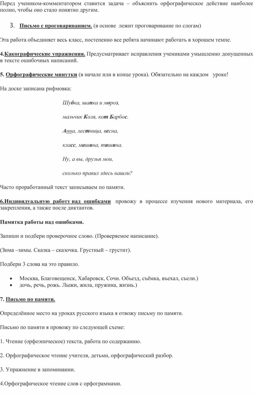 6.Индивидуальную работу над ошибками провожу в процессе изучения нового материала, его закрепления, а также после диктантов.