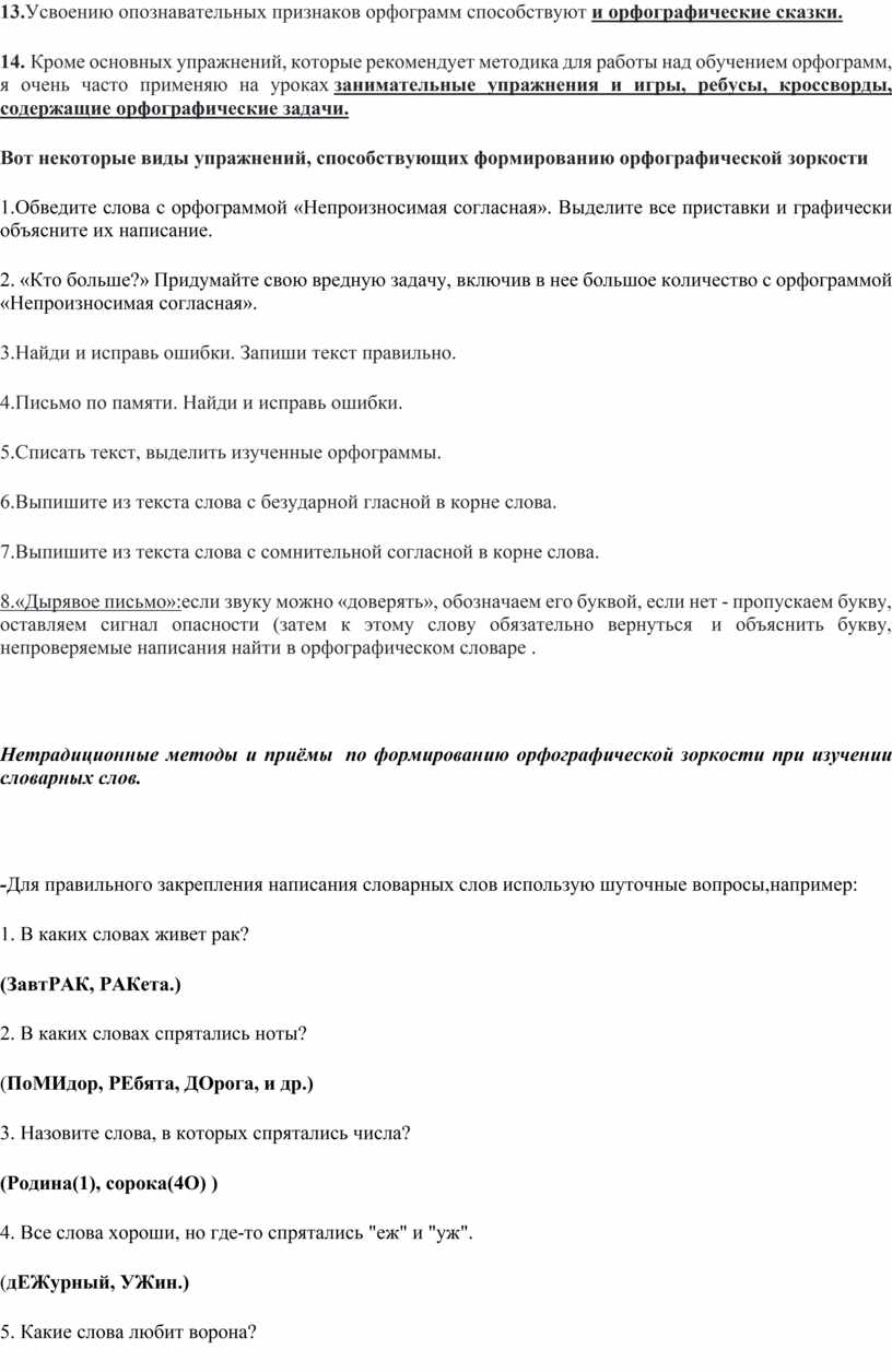 Нетрадиционные методы и приёмы по формированию орфографической зоркости при изучении словарных слов.