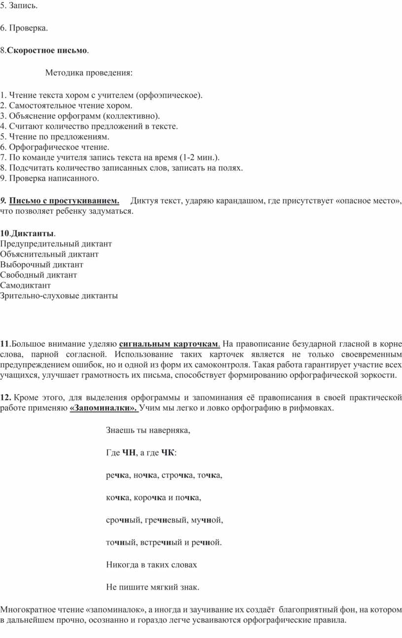 -разработать «орфографические разминки» для учащихся, обеспечивающие формирование грамотного письма;