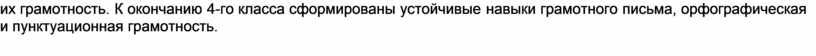 Когда (система 1-й класс – 4-й класс), в начале урока 8–10 минут проводится «разминка», заключающаяся в повторении основных правил станет возможным предположить, что необходимые навыки сформированы проводятся контрольные диктанты с целью проверить прочность правописных навыков по изученной (изученным) теме (темам) разделу (разделам). Также «разминка» перед серьезной и длительной работой активизирует мыслительную деятельность учащихся, как показали результаты наблюдений (анализ работ учащихся) повышает их грамотность. К окончанию 4-го класса сформированы устойчивые навыки грамотного письма, орфографическая и пунктуационная грамотность.