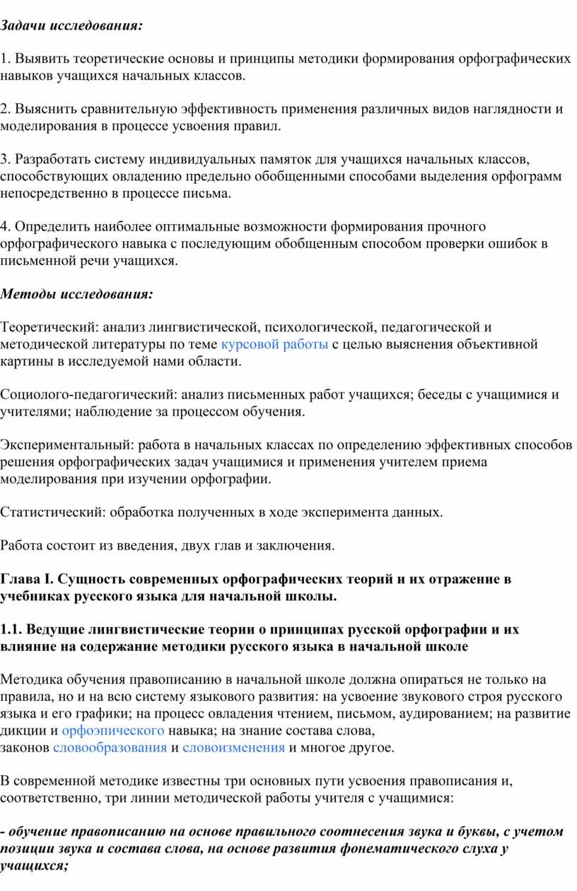 1. Выявить теоретические основы и принципы методики формирования орфографических навыков учащихся начальных классов.
