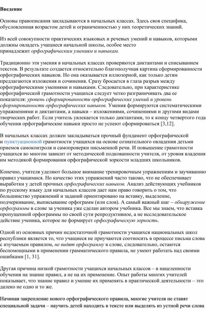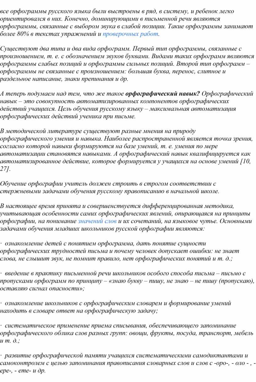 Из всей совокупности практических языковых и речевых умений и навыков, которыми должны овладеть учащиеся начальной школы, особое место принадлежит орфографическим умениям и навыкам.