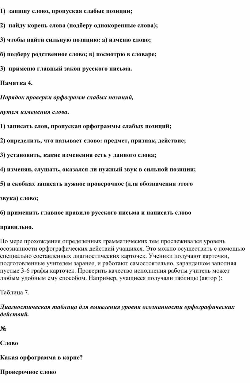 3. Разработать систему индивидуальных памяток для учащихся начальных классов, способствующих овладению предельно обобщенными способами выделения орфограмм непосредственно в процессе письма.