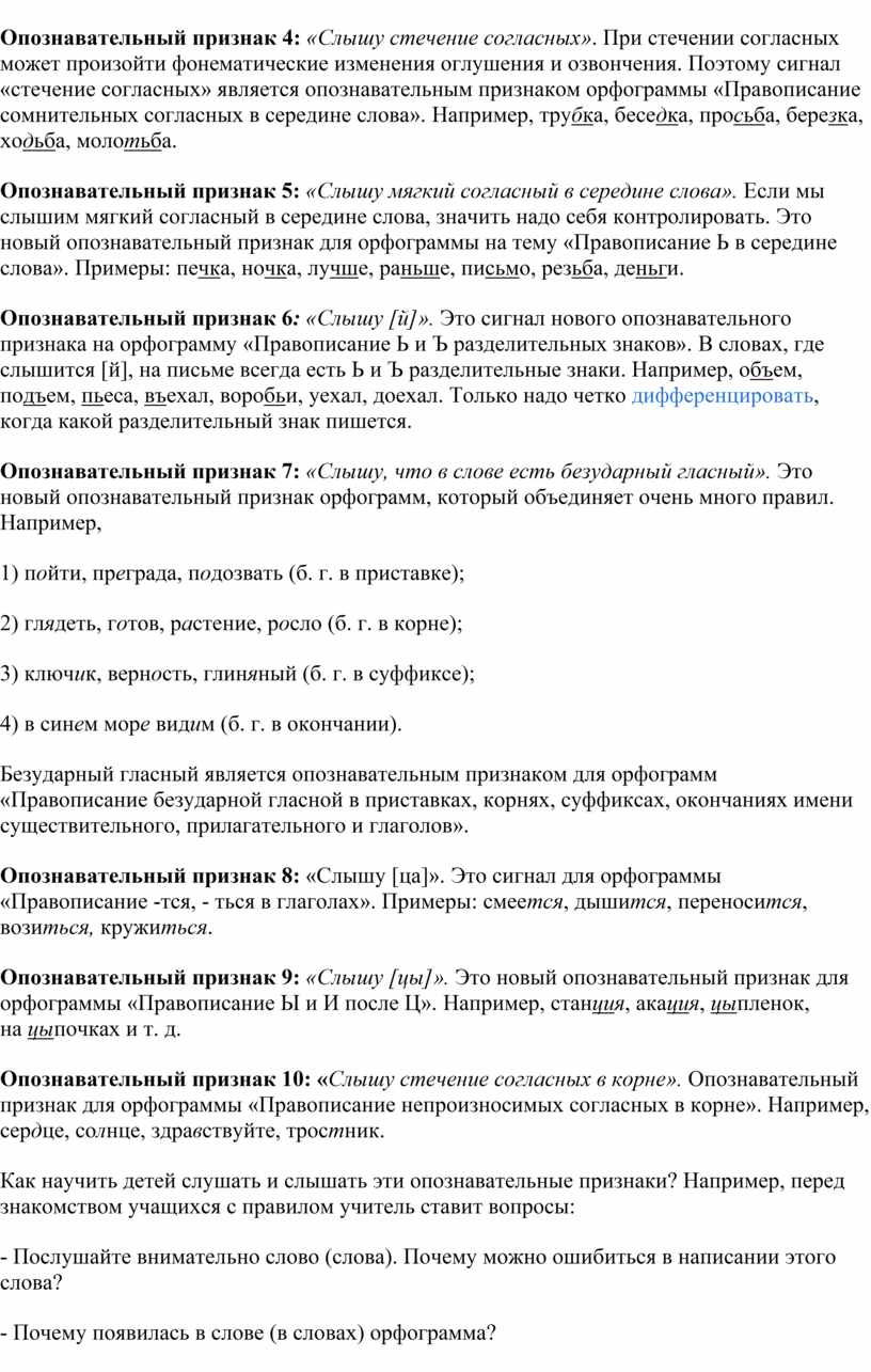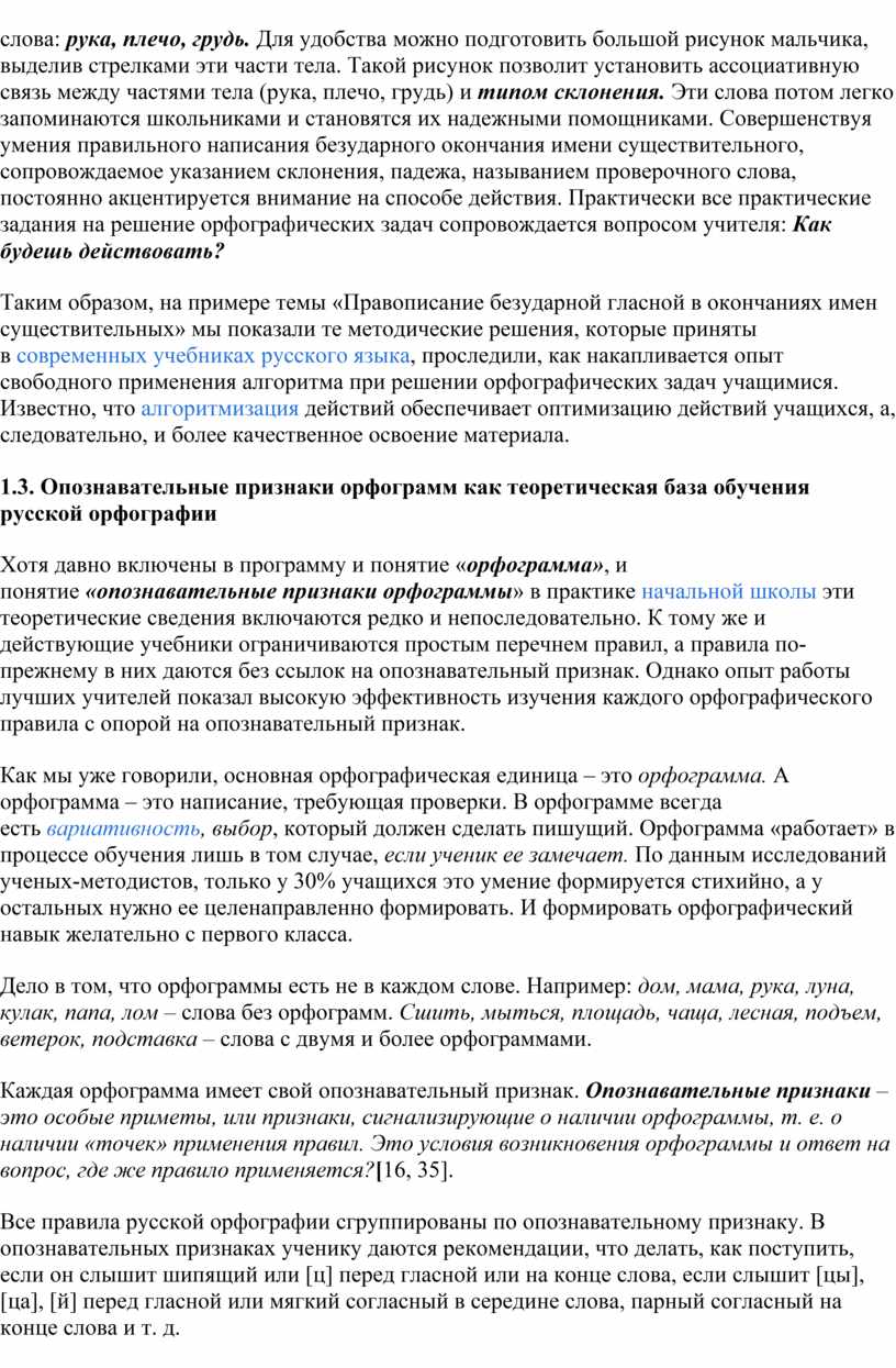 1.3. Опознавательные признаки орфограмм как теоретическая база обучения русской орфографии…………………………………………….19-29