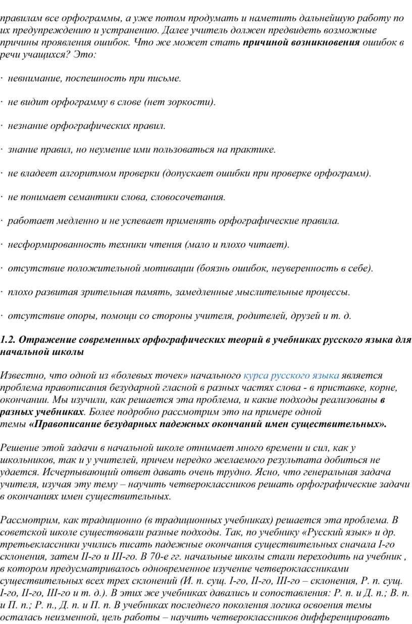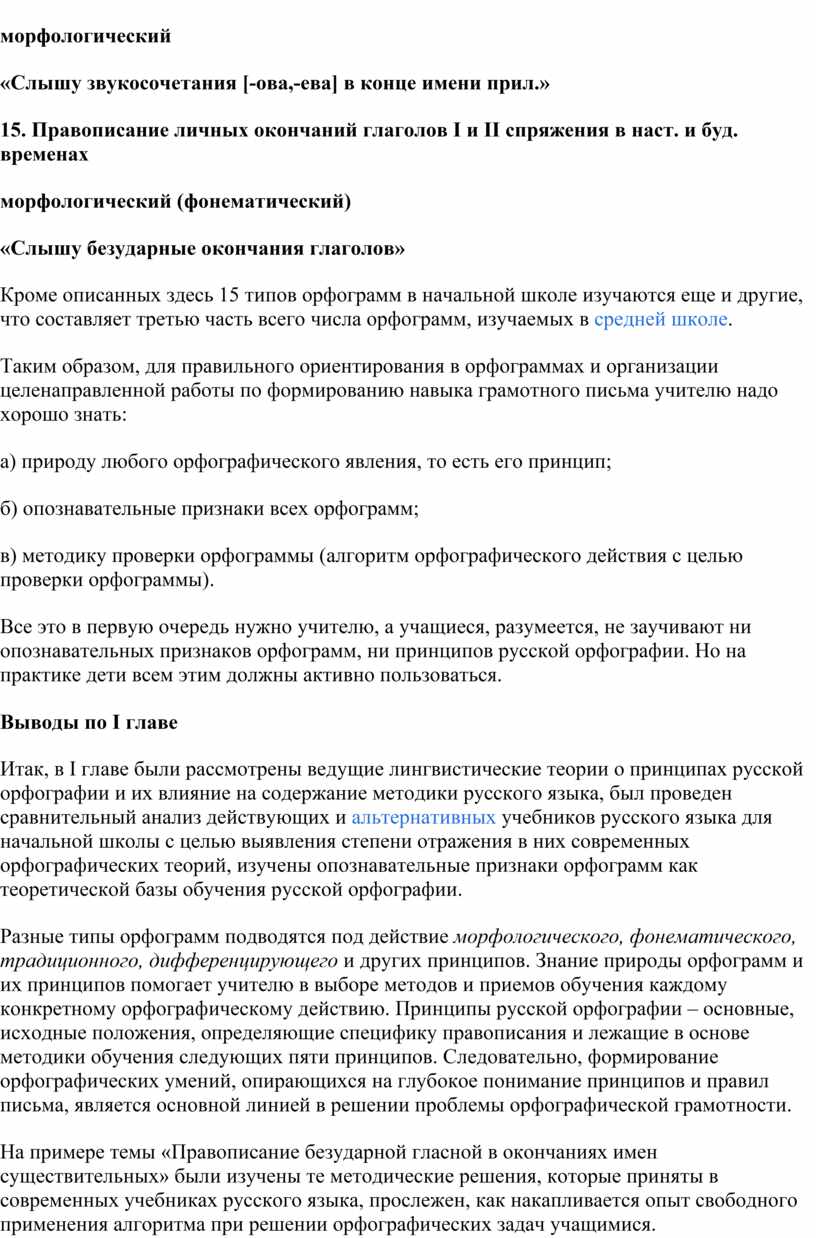 Глава I. Сущность современных орфографических теорий и их отражение в учебниках русского языка для начальной школы.