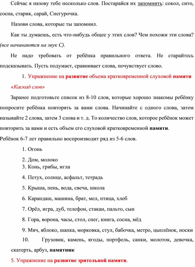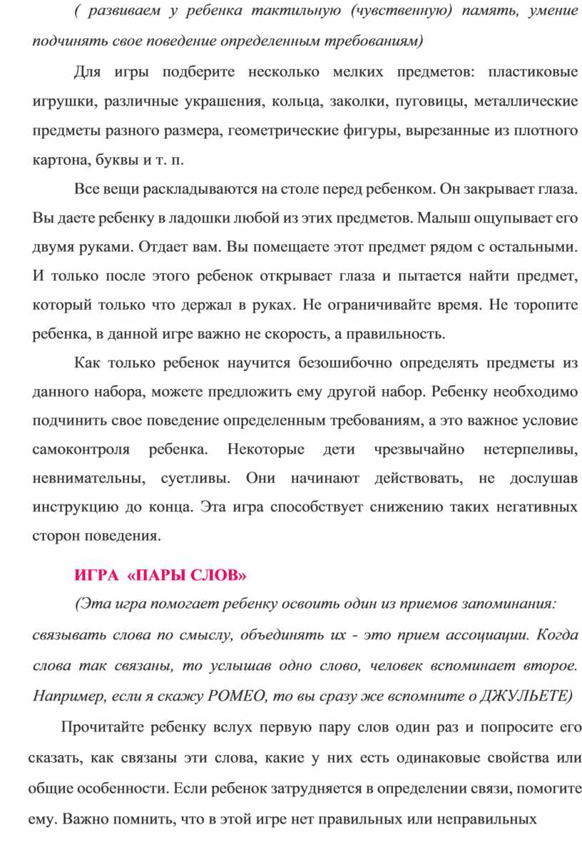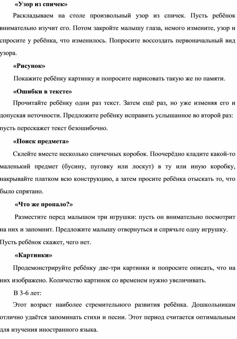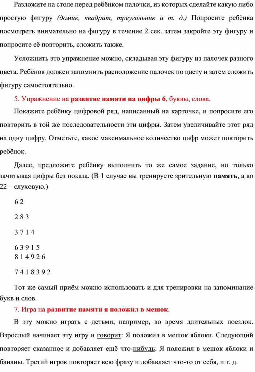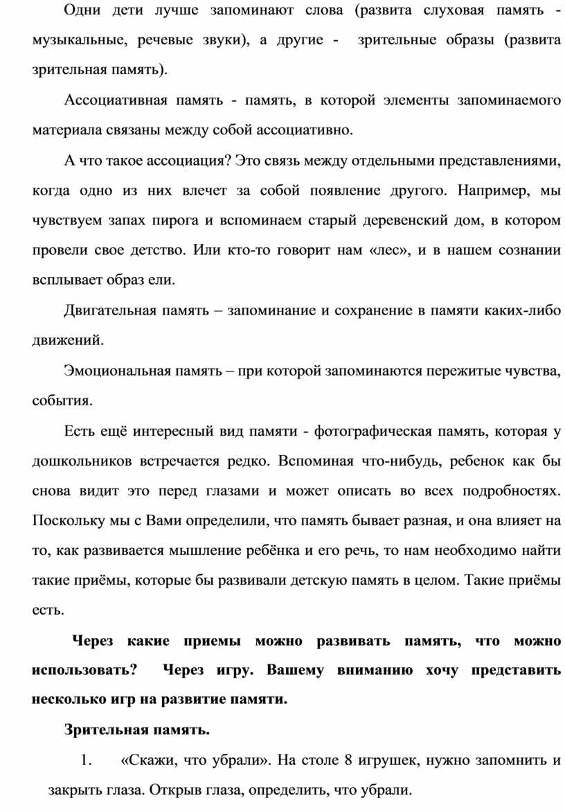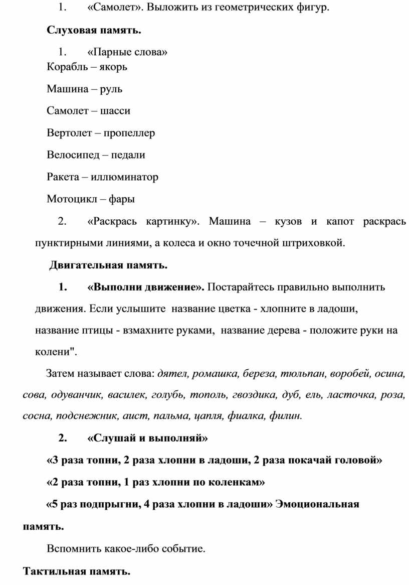 3.Развитие ассоциативной памяти 4.Развитие двигательной памяти 5.Развитие зрительной памяти |