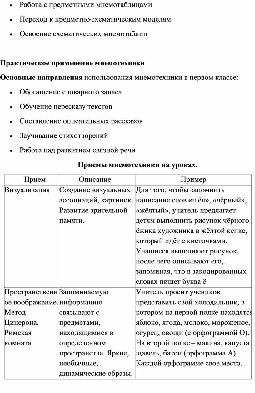 Статья на тему: «Развитие памяти обучающихся первого класса средствами мнемотехники».