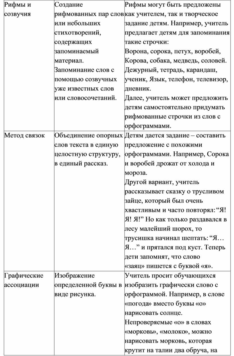 Мнемотехника является эффективным инструментом развития памяти младших школьников. Её применение позволяет не только улучшить запоминание учебного материала, но и способствует развитию целостной познавательной деятельности учащихся. Систематическое использование мнемотехнических приемов помогает формировать у первоклассников навыки самостоятельной работы с информацией и развивает их творческий потенциал.