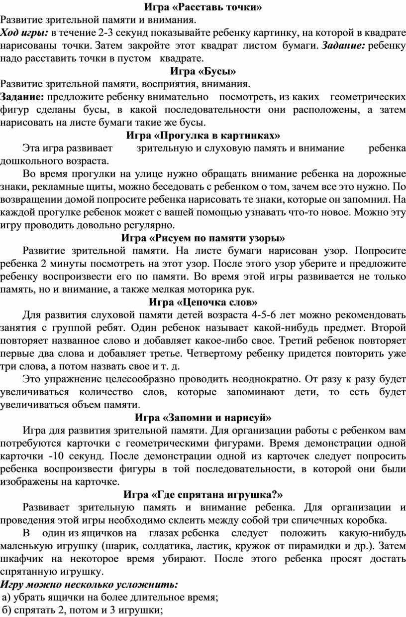 Эта игра развивает зрительную и слуховую память и внимание ребенка дошкольного возраста.