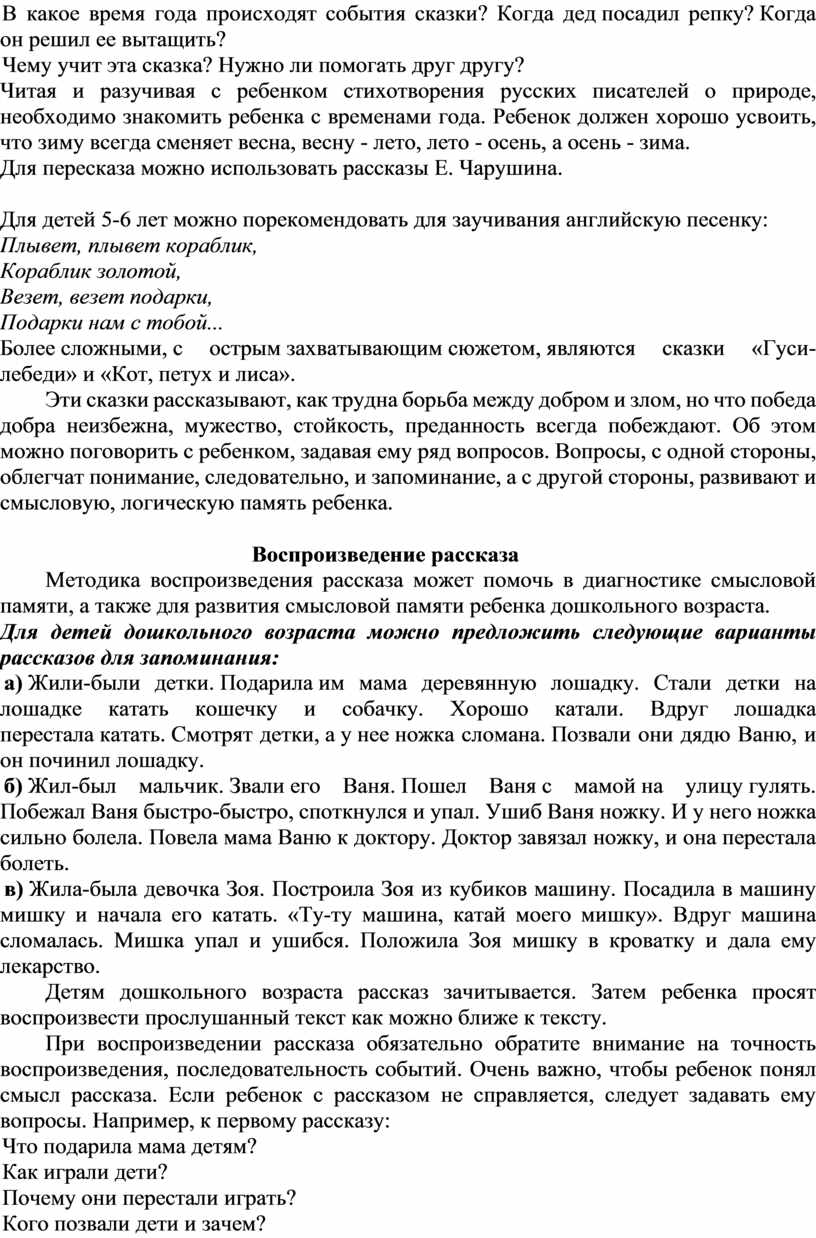 Для детей дошкольного возраста можно предложить следующие варианты рассказов для запоминания: