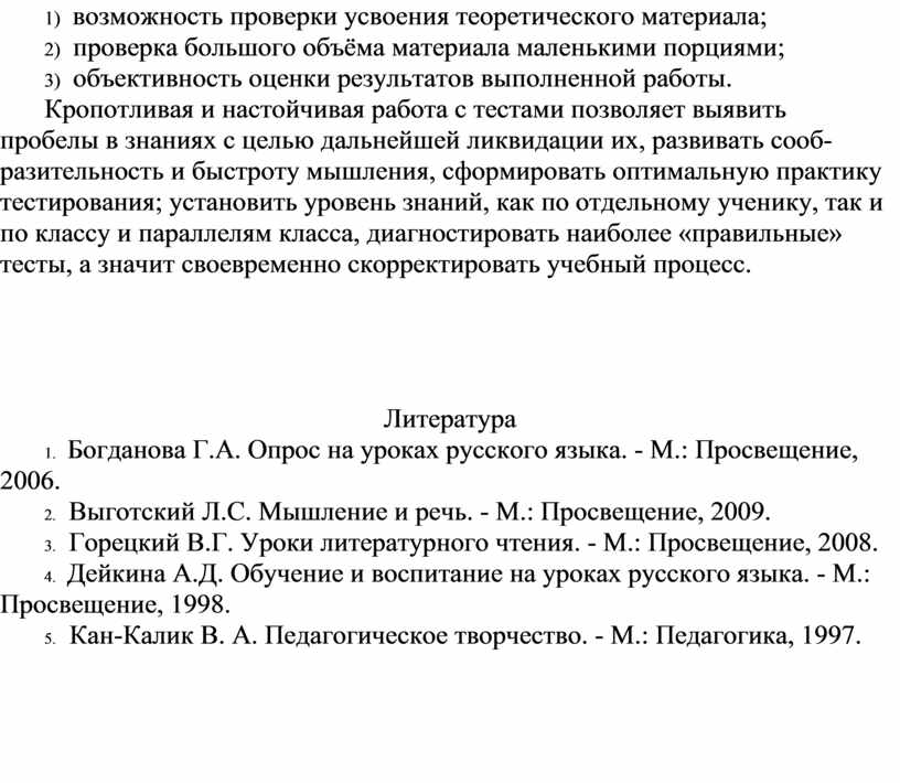 1. Богданова Г.А. Опрос на уроках русского языка. - М.: Просвещение,