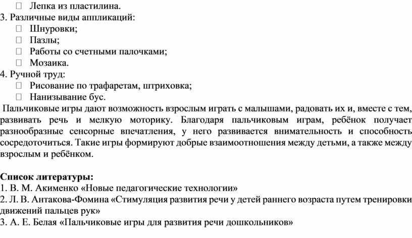 2. Л. В. Антакова-Фомина «Стимуляция развития речи у детей раннего возраста путем тренировки движений пальцев рук»
