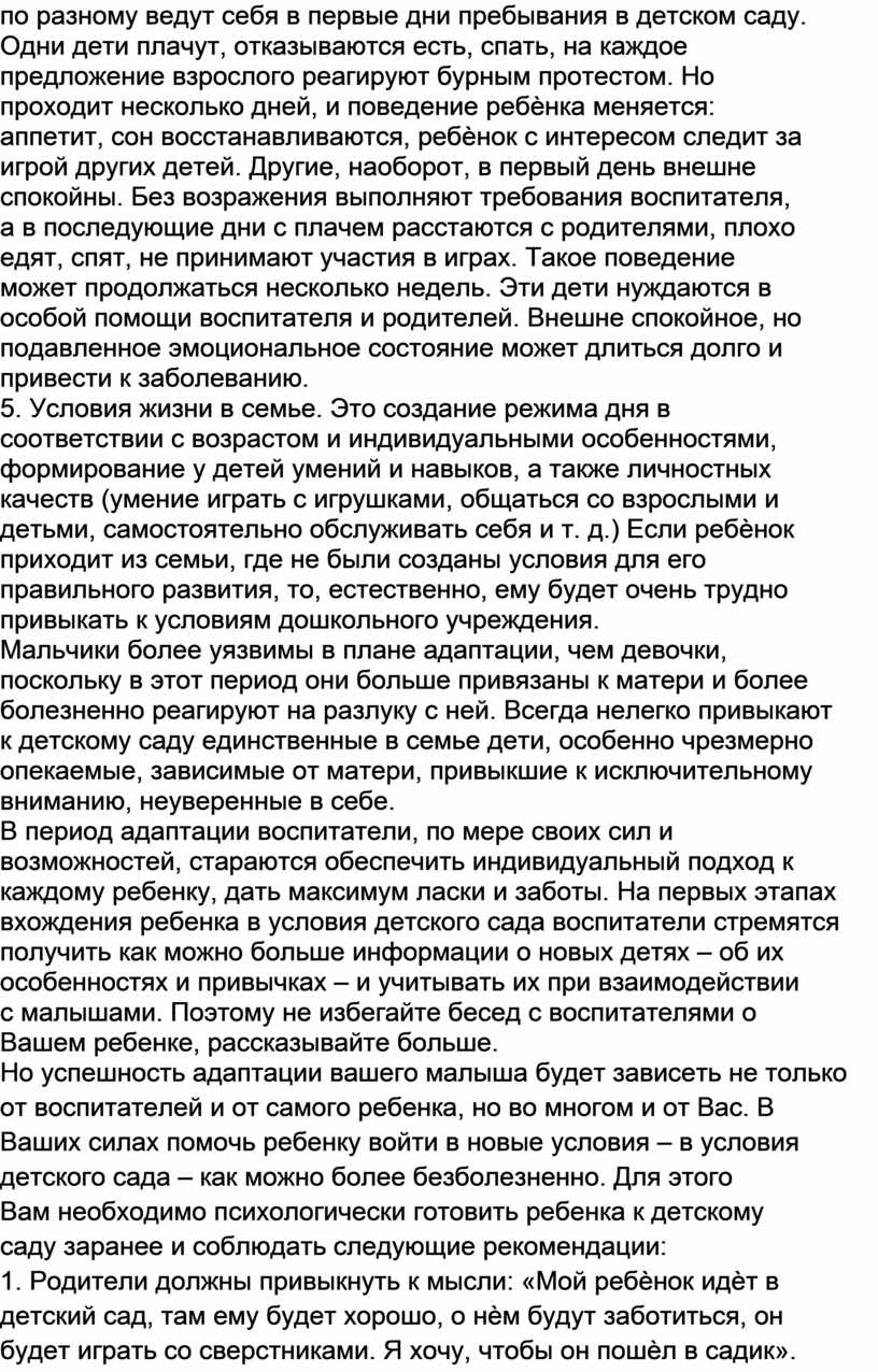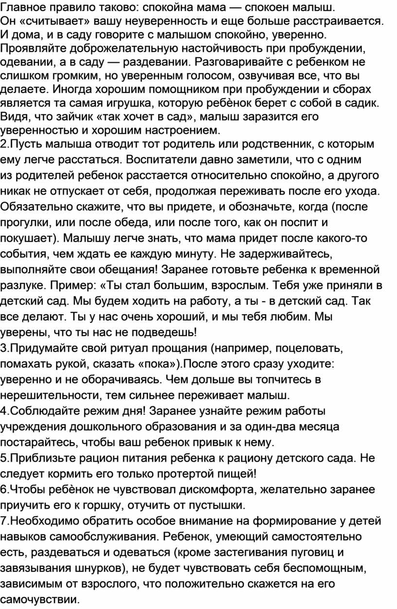 затрудняют адаптацию ребенка к детскому саду.Чего