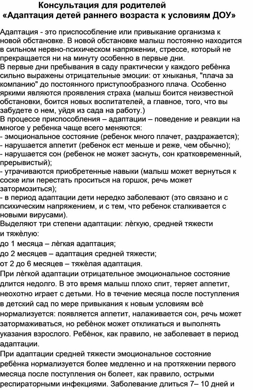«Адаптация детей раннего возраста к условиям ДОУ»