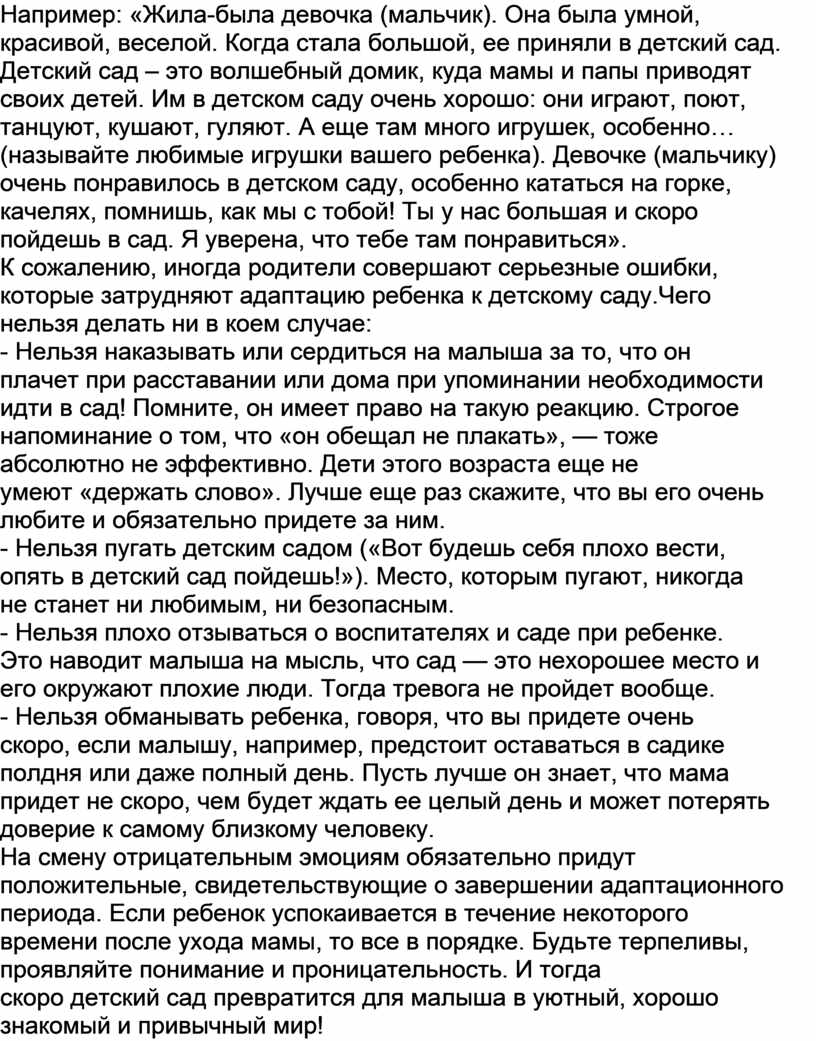 наводит малыша на мысль, что сад — это нехорошее место и