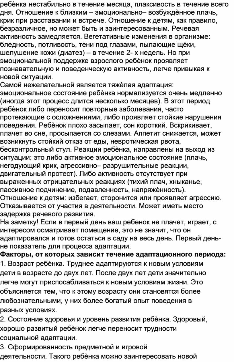 месяцев – тяжѐлая адаптация.