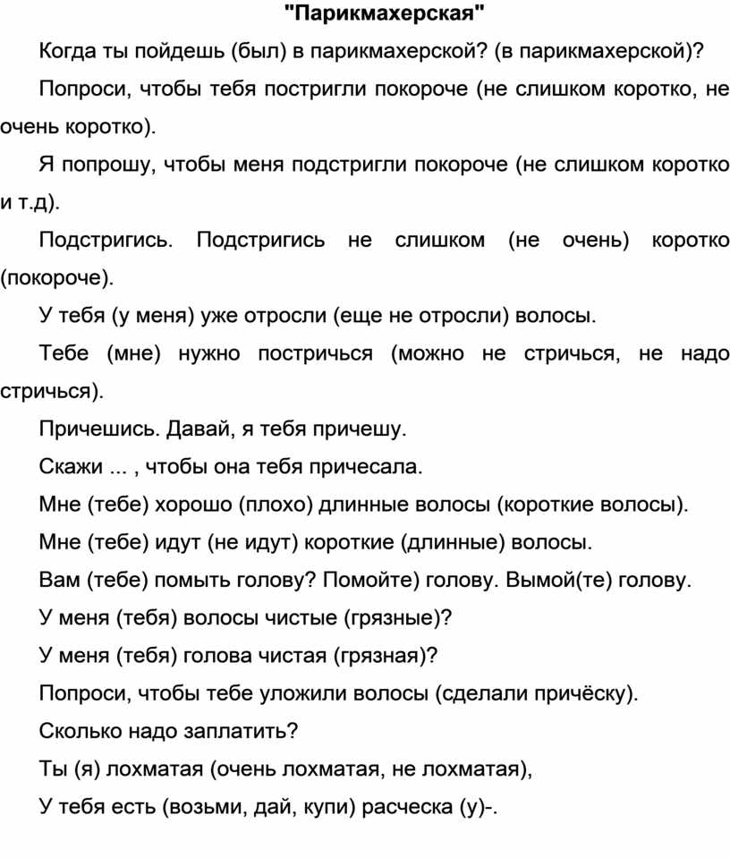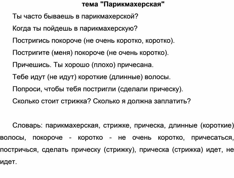Я попрошу, чтобы меня подстригли покороче (не слишком коротко и т.д).