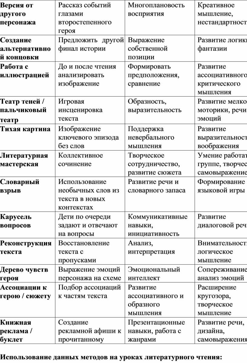 Использование данных методов на уроках литературного чтения: