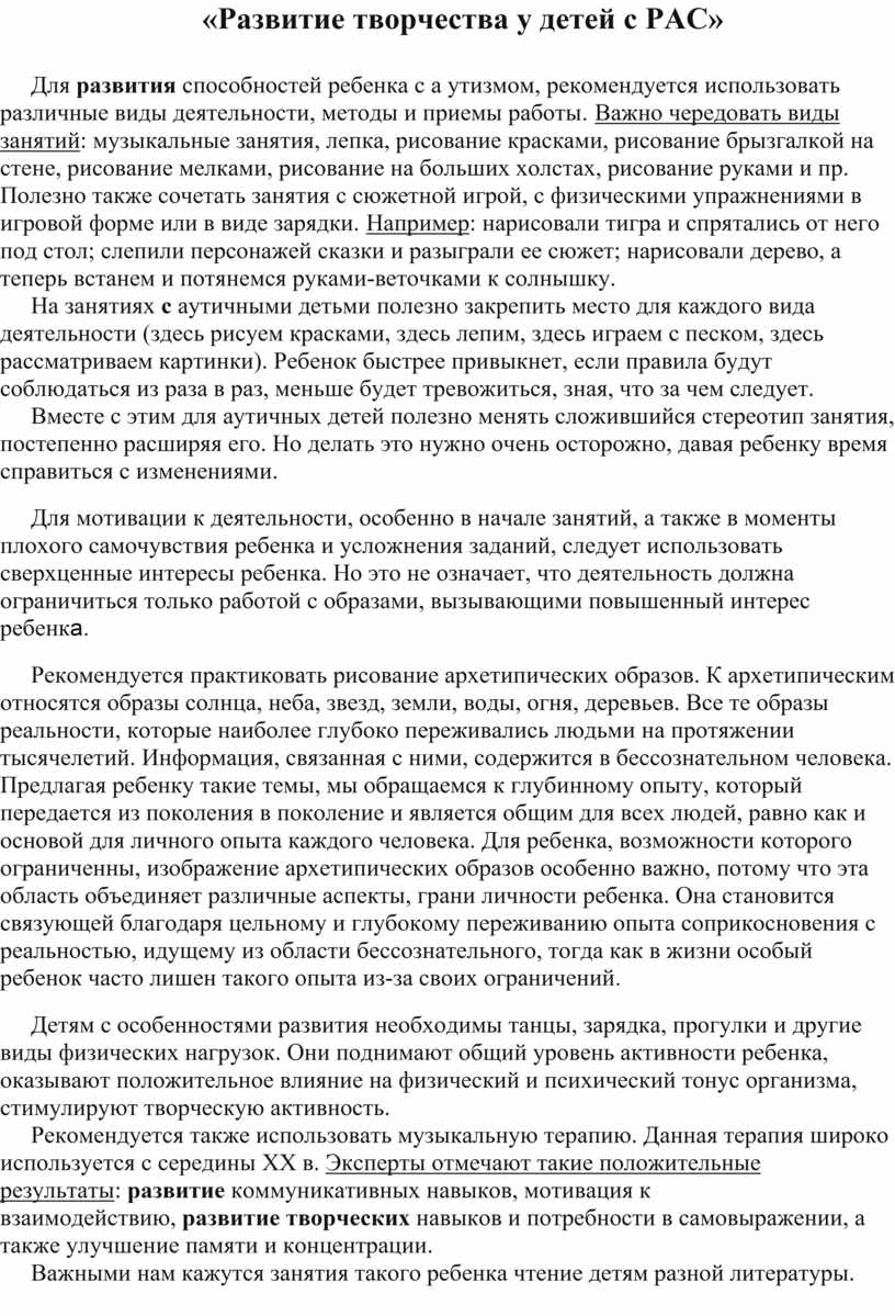 «Развитие творчества у детей с РАС»