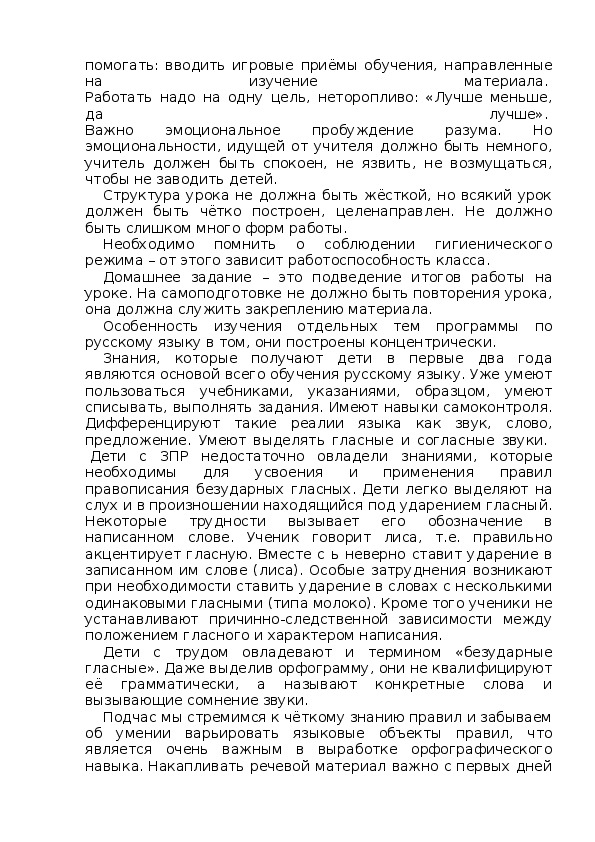 Многие дети, которые имеют слабо выраженную задержку психического развития, могут обучаться в массовой школе при условии, что учитель знает их особенности и оказывает им специфическую помощь. В этом случае они постепенно, через 2-3 года, сравниваются со своими нормально развивающимися сверстниками.