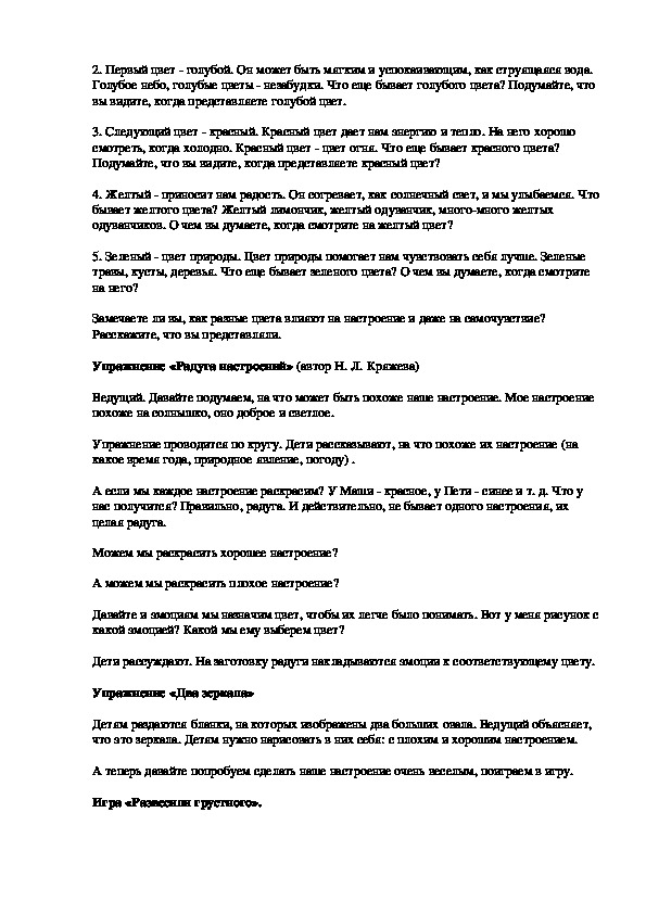 Упражнение «Радуга настроений» (автор Н. Л. Кряжева)