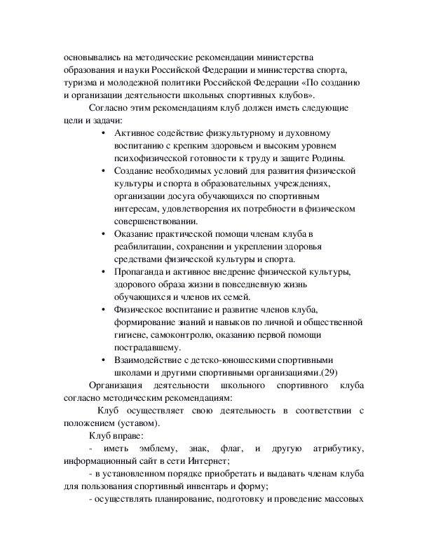 деятельности школьного спортивного клуба»