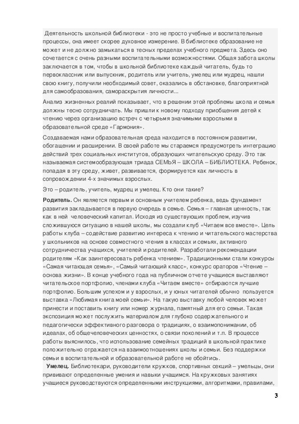 целенаправленных действий с трёх сторон: семьи, учителя, библиотеки. Вся